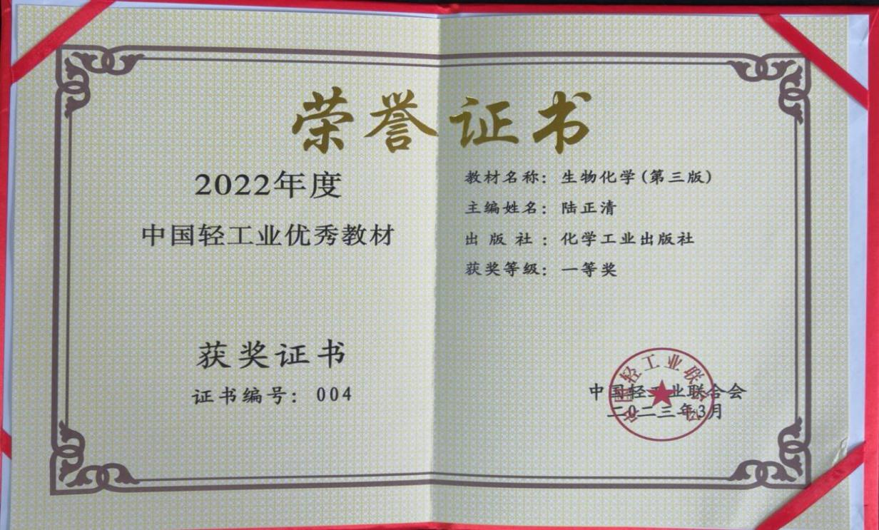 中国轻工业优秀教材一等奖