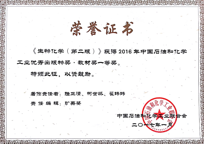 石油和化学工业优秀出版物一等奖